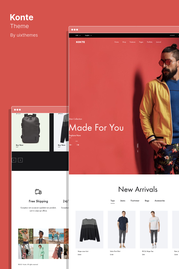 Konte 是一個 Minimal & Modern WooCommerce WordPress 主題,具有適用於電子商務、時尚、奢侈品珠寶和數字商店網站的設計和功能。