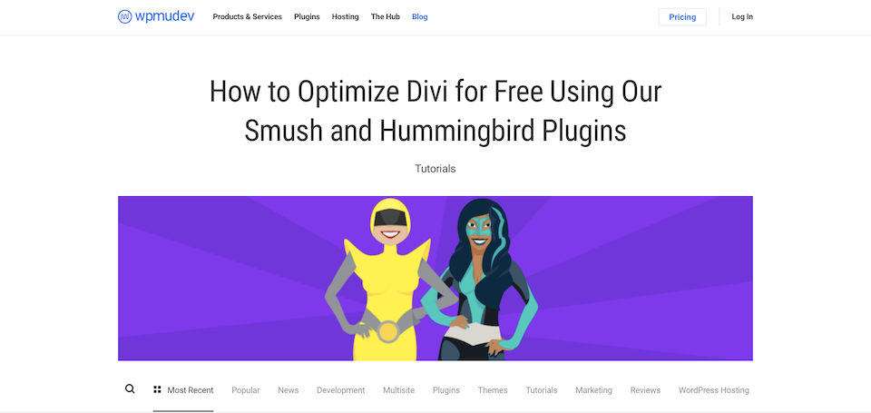 WPMU DEV 涵蓋各種商業和網站主題,最好的部分是色彩繽紛的博客有可愛的現代插圖,上面寫著:“嘿,WordPress 並不可怕,讓我們多了解一下。” 通過視頻主題綜述和巧妙的推薦獲得設計靈感。 通過面對面閱讀兩種服務或工具,在兩種服務或工具之間進行選擇。 並訪問執行 WordPress 必須的大型指南,例如使您的網站更快。