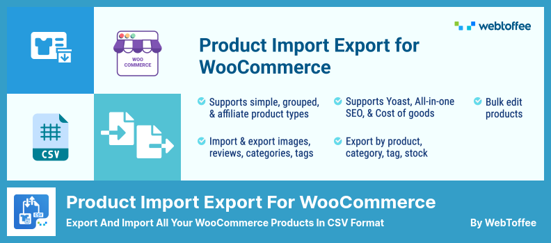 WooCommerce 插件的產品導入導出允許您將 WooCommerce 產品導出和導入 CSV 格式。