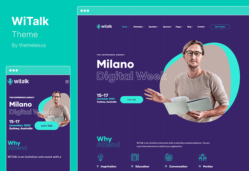 使用 WiTalk WordPress 主題,您可以為您的會議或活動構建一個設計精良、現代且多功能的網站。