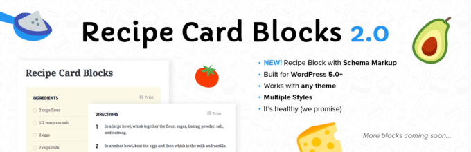 Recipe Card Blocks 是一個輕量級的食譜插件,集成到本機 WordPress 塊編輯器(AKA Gutenberg)中。 顧名思義,它為您提供了關鍵食譜詳細信息的專用塊,例如成分、說明、營養成分、讀者評論/評級等。