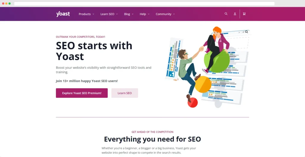 Yoast SEO 是一款廣泛使用的免費 WordPress SEO 插件,對於提高部落格在 Google 搜尋結果中的可見度至關重要。 它不僅僅是基本的搜尋引擎優化; 它會建立 XML 網站地圖、建立資料、管理向 Google 顯示或隱藏哪些頁面等等。