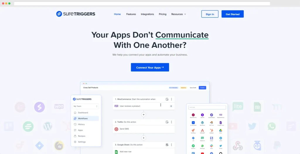 SureTriggers 非常適合為業務使用不同應用程式(例如 CRM、學習系統、會員工具和線上商店)的 WordPress 網站所有者。 它連接這些應用程序,透過自動化任務來節省時間。