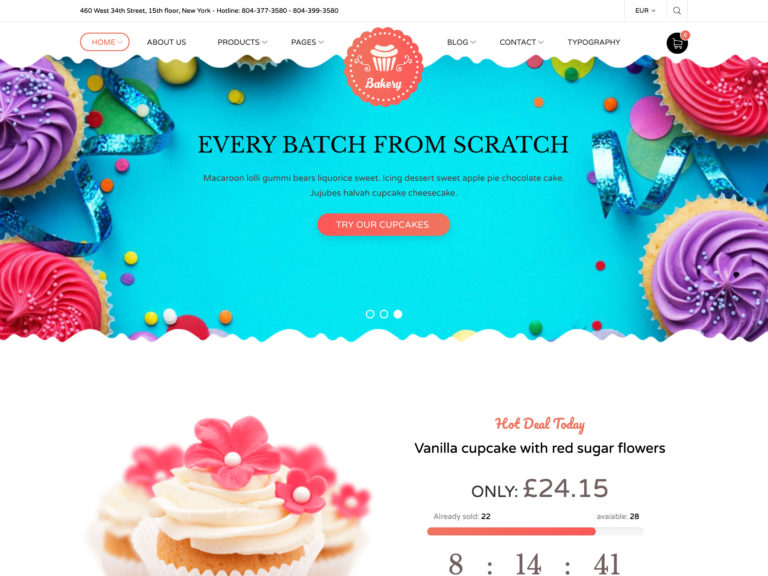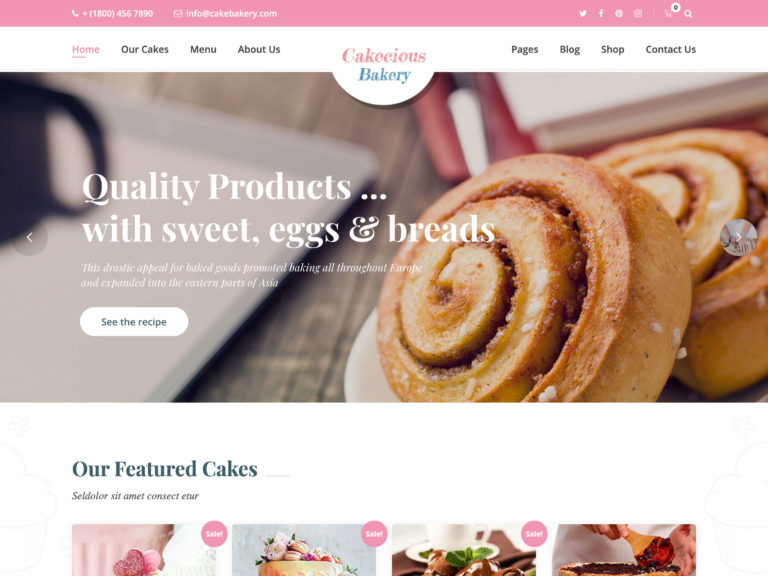 Cake & Bakery 是一個時尚的主題,具有許多麵包店肯定會發現有用的功能。