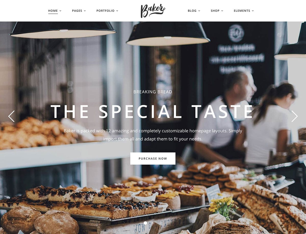 一些適用於麵包店的最佳 WordPress 主題擁有精美的庫存圖片、多種主頁佈局、簡單的簡碼,通過設計和時尚的電子商務集成讓事情變得更容易,以便向客戶銷售烘焙食品。 有了貝克,你就能得到這一切。
