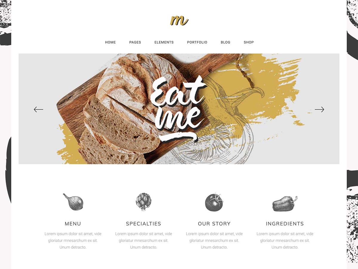 每個主頁模板都有一個令人驚嘆的標題區域,您可以在其中添加號召性用語,在下方您可以分享麵包店的故事、特色推薦、糕點師等。 該主題還帶有許多不同的內頁,並且由於主題選項面板,您可以完全控制主題的視覺樣式。 自定義顏色、字體、調整背景、邊距、填充,添加您自己的徽標等等。