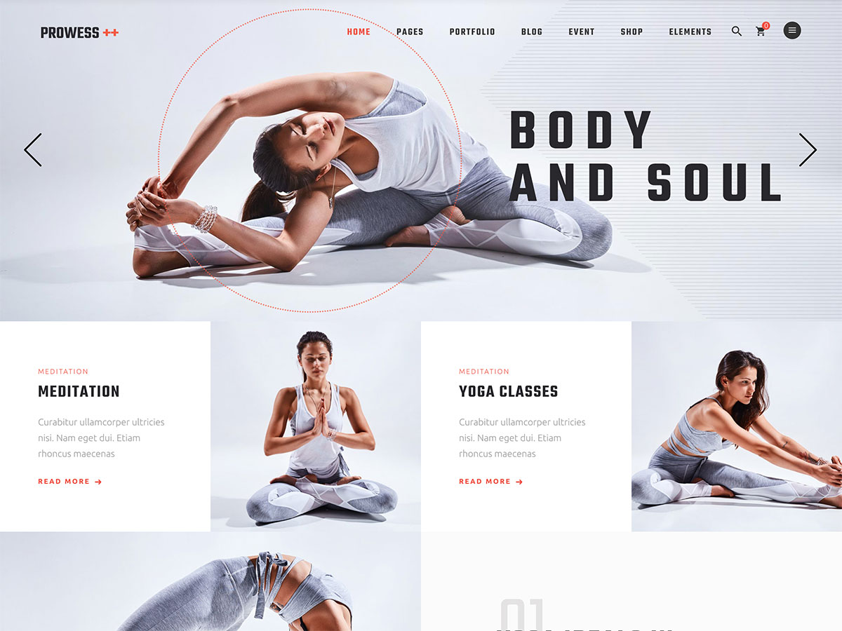 Prowess 主題提供九個不同的主頁演示,其中一個具有獨特的畫廊佈局,一定會讓您的網站脫穎而出。 該主題使用全角滑塊,可用於分享您最近的博客文章或展示您流行的瑜伽套路。 利用優雅的時事通訊表格,您可以開始建立您的電子郵件列表並通過添加顯示您擁有多少滿意客戶的計數器來建立信任。 您可以輕鬆添加內置的 BMI 計算器來服務您的受眾並鼓勵他們與您的網站互動。