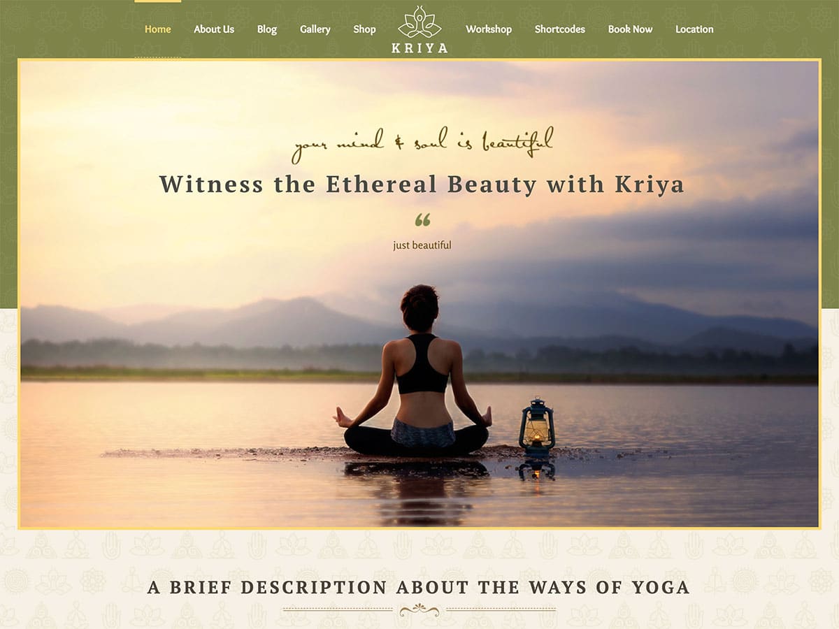 Kriya Yoga 主題採用寧靜的配色方案,非常適合旨在促進內在平衡和正念生活方式的瑜伽網站。 它有足夠的空白空間,可以讓您的內容和號召性用語脫穎而出,而不會讓您的頁面看起來雜亂無章。 主頁以華麗的動畫滑塊開始,向下可讓您顯示有關您的瑜伽工作室提供的瑜伽練習類型的簡要信息。 此外,您可以利用姿勢模塊顯示每個瑜伽姿勢的圖像和詳細描述。