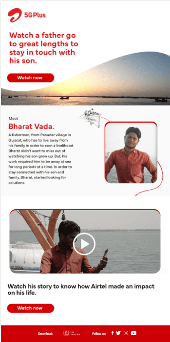 我們以Airtel為例,它利用真實的故事來宣傳其Airtel 5G網絡,