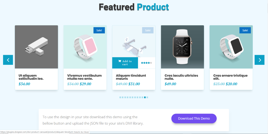 我喜歡它有可下載的演示。 它們包括模塊的背景和样式。 這些非常適合為您提供一個起點或激發您的想像力,以在您的 Divi 佈局中展示您的 WooCommerce 產品。