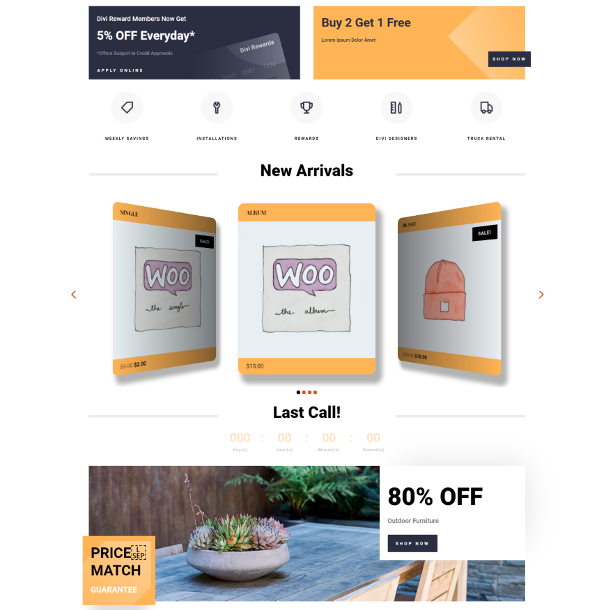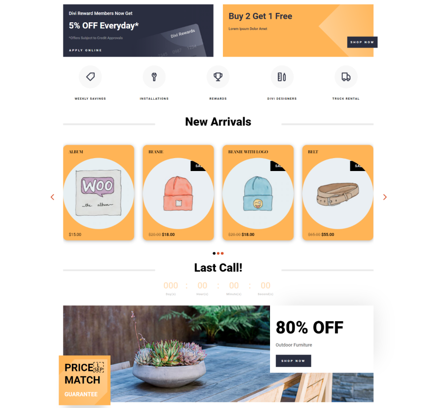 產品輪播非常適合 Divi 佈局。 在這個例子中,我用 Divi Product Carousel Module 替換了 Divi shop 模塊,並將它的樣式設置為與佈局相匹配。