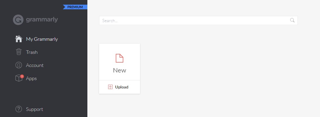 第一種方法是簡單地將文字複製並貼上到 Grammarly 線上工具中。 為此,請轉到儀表板並點擊新建。 您將被傳送到一個空白頁。