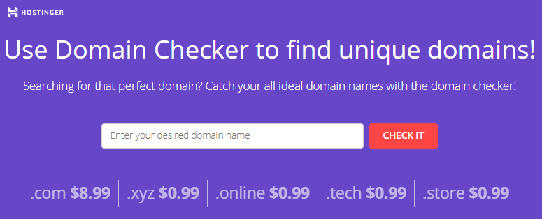 Hostinger 提供最適合您的最便宜的域名。 您只需 8.99 美元即可註冊 .com 域名。
