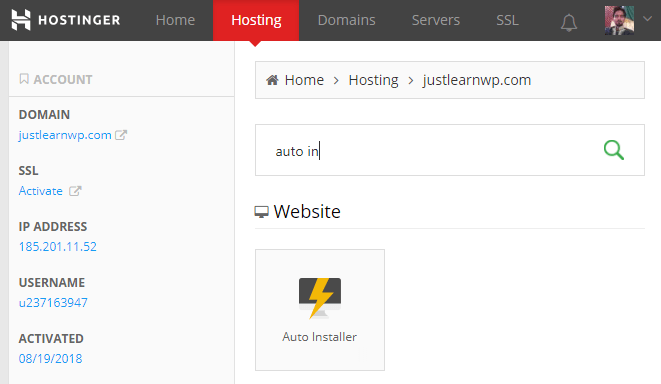 使用 Hostinger 設置您的網站也非常容易和簡單,我能夠使用自動安裝程序安裝 WordPress,並且只用了不到五分鐘。