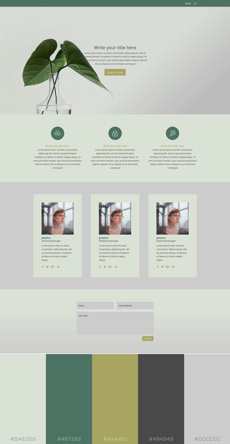 現在我們已經分析了將調色板應用到您的網站所需的步驟,是時候開始探索一些令人驚嘆的調色板了。 除了向您展示我們製作的示例佈局的結果之外,我們還將分享我們用來達到該結果的顏色代碼。