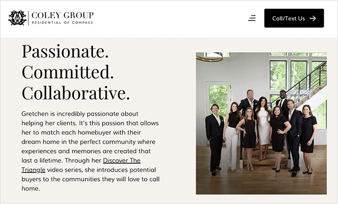 您的房地產網站不僅僅是針對不同類型房產的列表服務。 在這裡,您還可以展示您的房地產代理機構、其價值觀及其背後的房地產專業人士。
