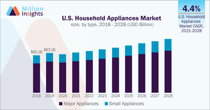 2020 年全球廚房電器市場規模為 2306 億美元,預計 2021 年至 2028 年的複合年增長率為 4.4%。