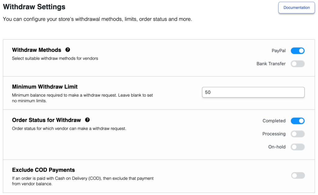 運行交互式在線市場的另一個重要部分是確保提款系統順暢。 Dokan 也可以幫助您處理這一部分。