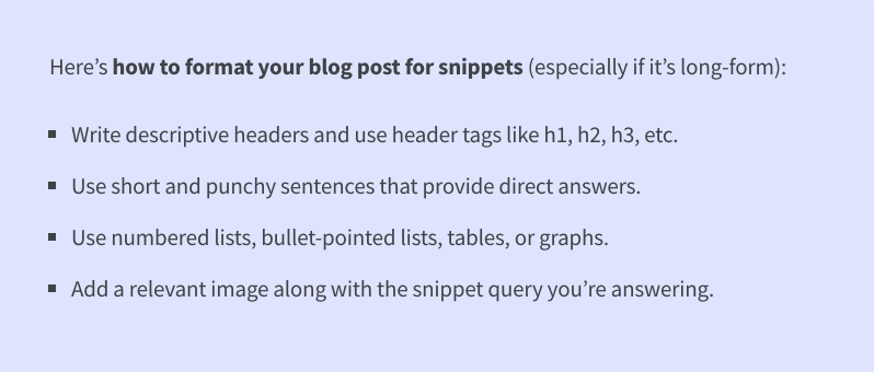 您可以首先查看您已經擁有良好排名的關鍵字和短語。 您如何進一步改進該內容? 您可以添加其他列表或表格嗎? 像這樣的小改變將使通過精選片段獲得提升的所有差異。