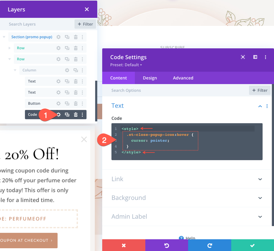 然後通過促銷代碼文本模塊下的按鈕模塊。