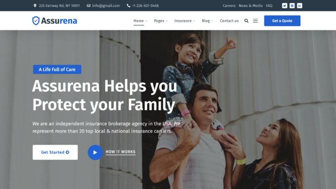Assurena 是一個時尚的 WordPress 主題,用於創建保險代理網站。
