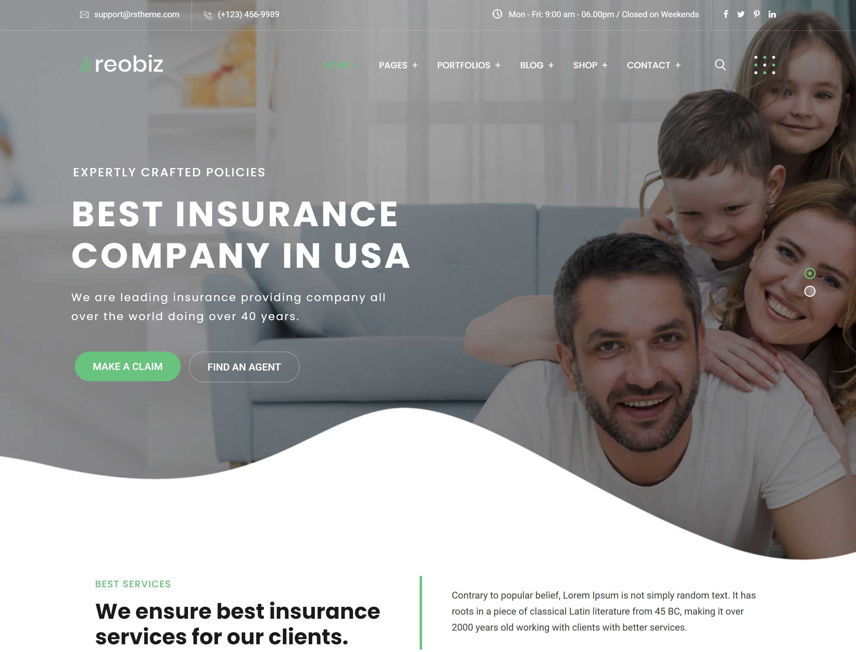 Reobiz 在其以業務為中心的模板庫中有一個時尚的保險網站演示。