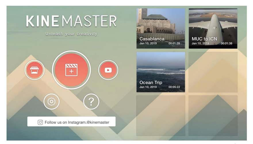 Kinemaster 是一款免費且基於訂閱的視頻編輯應用程序,適用於 iOS 和 Android。 事實上,這兩種設備的界面是相似的。 Kinemaster 應用程序讓很多人感到驚訝,並被列入了許多描述“2019 年最佳移動視頻編輯器”的列表博客文章中。