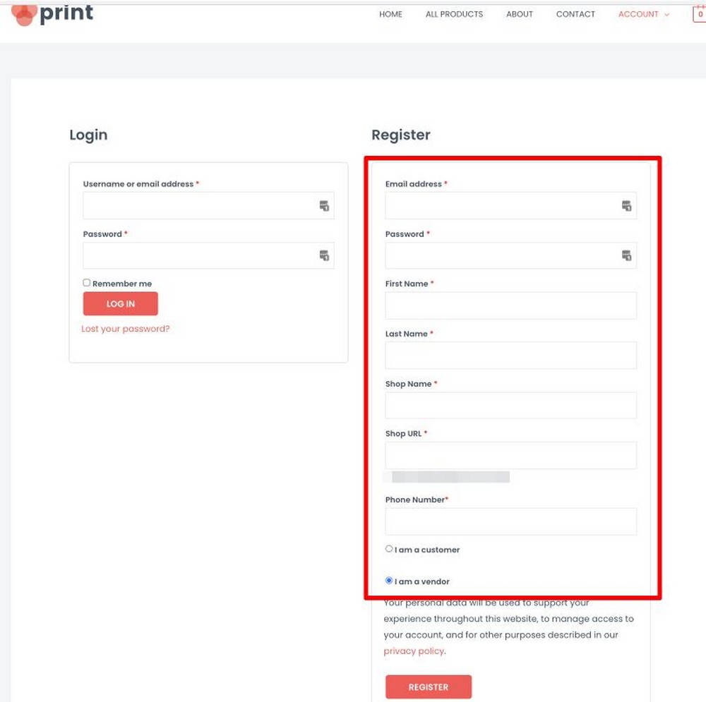 Dokan 讓創建供應商資料變得超級容易。 潛在供應商只需從網站轉到“我的帳戶”頁面並設置他們的帳戶。