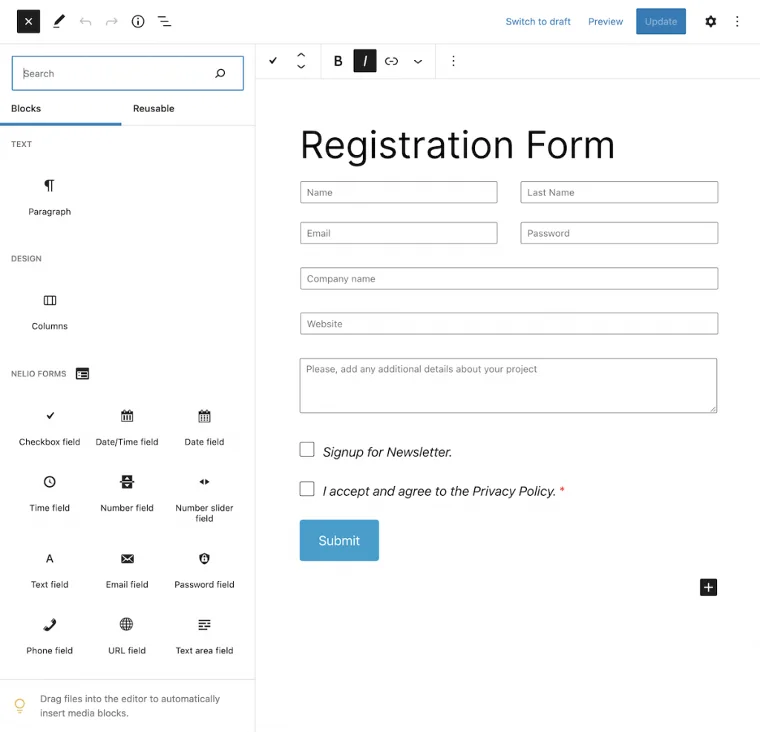 如果您正在尋找一種使用 Gutenberg 編輯器在您的網站上創建表單的簡單直接的方法,Nelio Forms 是許多流行的聯繫表單構建器的可靠且易於使用的替代方案。