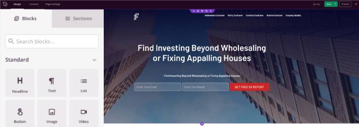 完成著陸頁設計後,請點擊頁面建立器頂部的「連線」標籤,然後選擇電子郵件行銷提供者以收集網站上的潛在客戶。