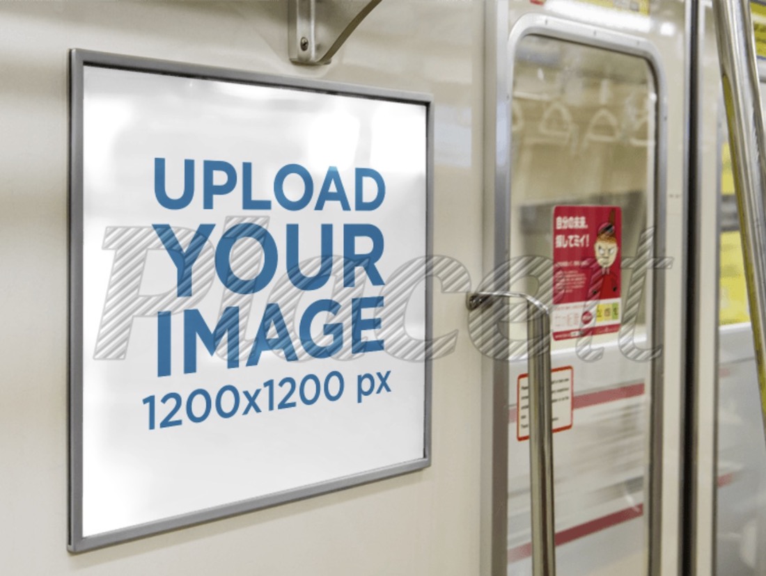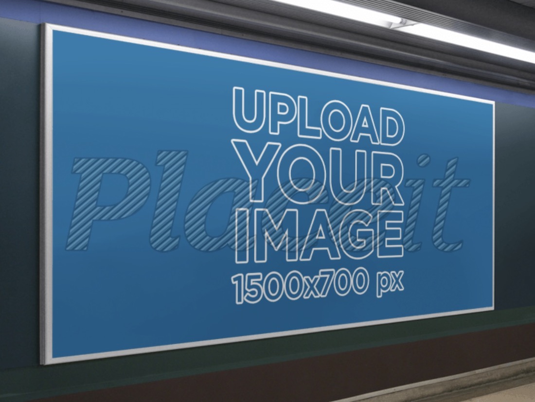 一個美麗而簡約的地鐵廣告模型,帶有 1200 x 900 像素尺寸的橫幅。 如果您的設計具有相同的比例,您只需將其滑入並顯示在設置中。 通過您的創意觸摸豐富默認外觀的整個過程在 Placeit 上輕而易舉。 這是一個充滿模型的平台,不需要真正的設計技能和經驗。 準備好您的創意後,通過您的計算機或 URL 上傳它,就是這樣。 也可以從瀏覽器中添加額外的文本疊加和圖形 - 不需要 Photoshop。