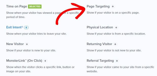 Because your goal is to get testimonials, you will want to focus on customers on your website's checkout page. Click on Page Targeting .