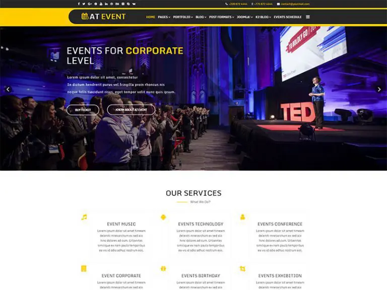 AT Event 是一個響應式婚禮和活動 Joomla 模板目標,供所有活動策劃者/公司展示和推廣他們可以舉辦的活動。 首先,該主題具有尖端功能,例如用於佈局的頁面構建器、用於有效編輯內容的簡碼。 此外,網站代碼中的 CSS3 媒體查詢允許響應功能。 由於媒體查詢,網站內容適應輸出設備。 更重要的是,它在任何設備上都可以完全響應,並且具有排列良好的文檔,訪問者可以輕鬆閱讀您的信息。