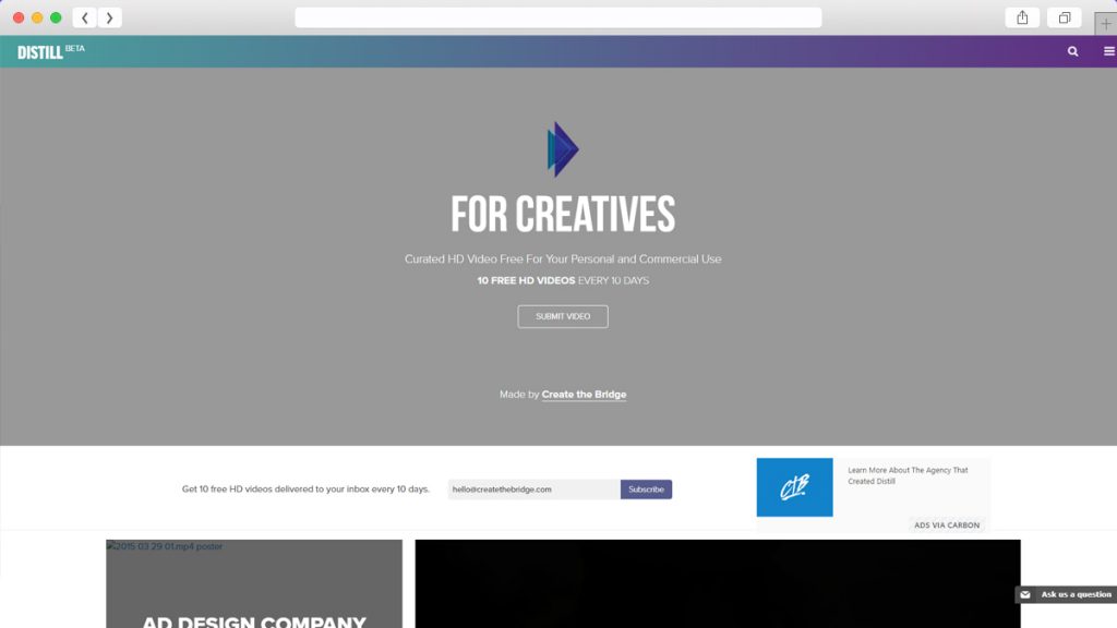 Distill 的功能與其他廉價股票視頻網站略有不同。 如果您在本網站上註冊免費視頻片段,您將收到不同的視頻片段,收件箱會發送到您的電子郵件地址。 他們為您的電子郵件提供了 10 個視頻的集合,您可能會發現這些視頻最有趣。 由於這些視頻是由一組創意人員精心挑選的,因此您可以信賴視頻的口味。 在免費會員中,他們每天會通過電子郵件向您發送十個免費視頻。 如果您正在尋找完全免費的素材,這是要查看的網站。