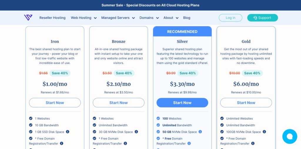 Verpex 的雲託管計劃包括鐵級、銅級、銀級和黃金級,可滿足不同的需求和預算。