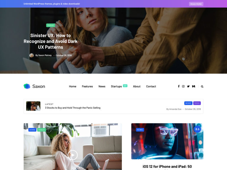 Saxon 是另一個博客和雜誌主題,具有許多功能可以幫助您的網站傳播開來。