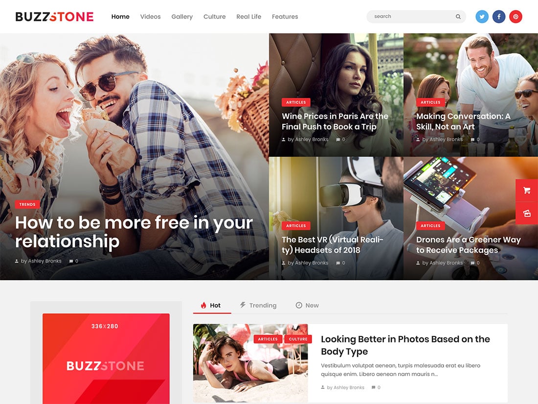 無論您想推出新的個人博客還是多作者在線雜誌,Buzz Stone 都是合適的主題。