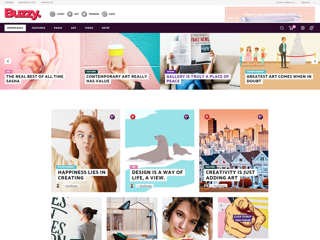Buzzy 擁有全套時尚模板,可幫助您創建病毒式 WordPress 網站。