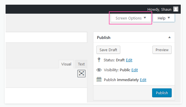 屏幕選項按鈕允許您在當前查看的 WordPress 管理屏幕上顯示和隱藏項目。