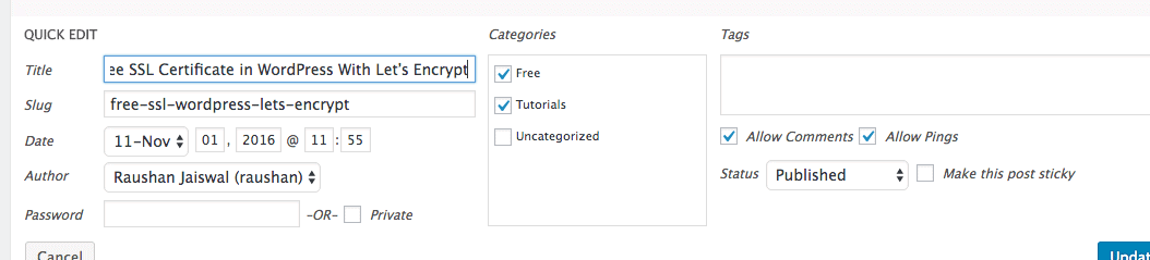 如果您想對帖子進行快速更改,使用快速編輯功能可以加快工作速度,並且可以節省大量時間。