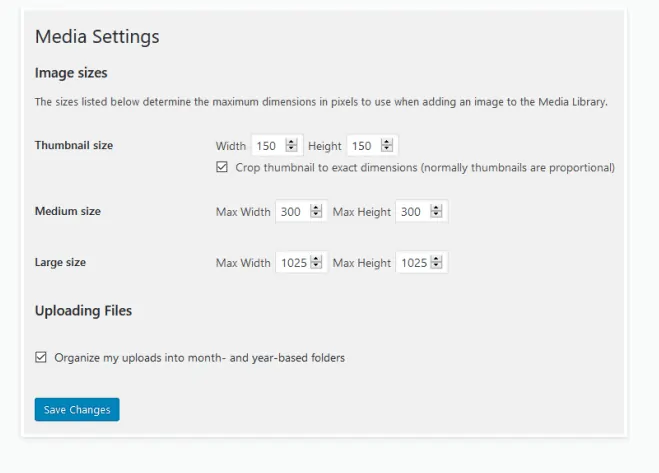 儘管 WordPress 帶有預設圖像尺寸,但您可以通過設置 > 媒體自定義默認圖像尺寸。