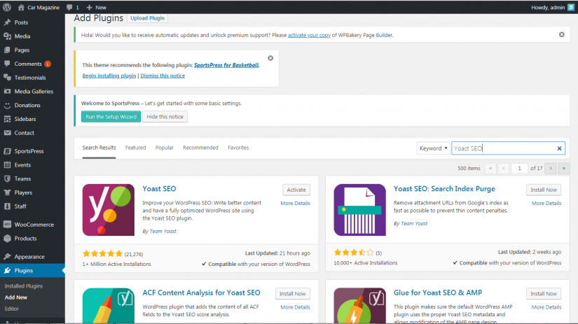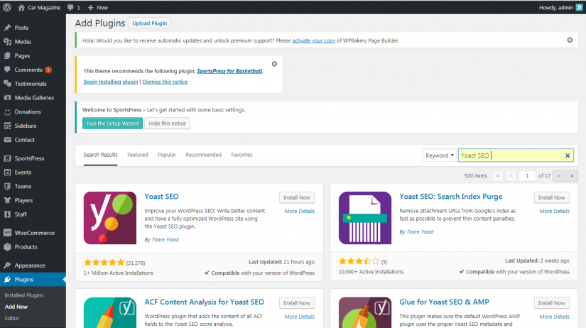 - 轉到插件中的管理面板-> 添加新並蒐索 Yoast SEO。