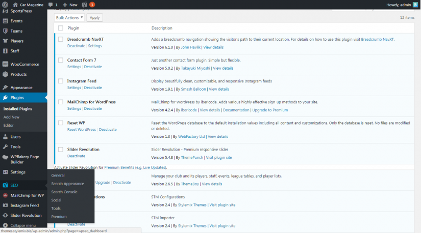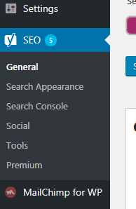 成功安裝並激活插件後,帶有 Yoast 徽標的 SEO 選項出現在 WordPress 左側面板中,如下面的屏幕截圖所示。 要開始使用此插件,您只需單擊它。